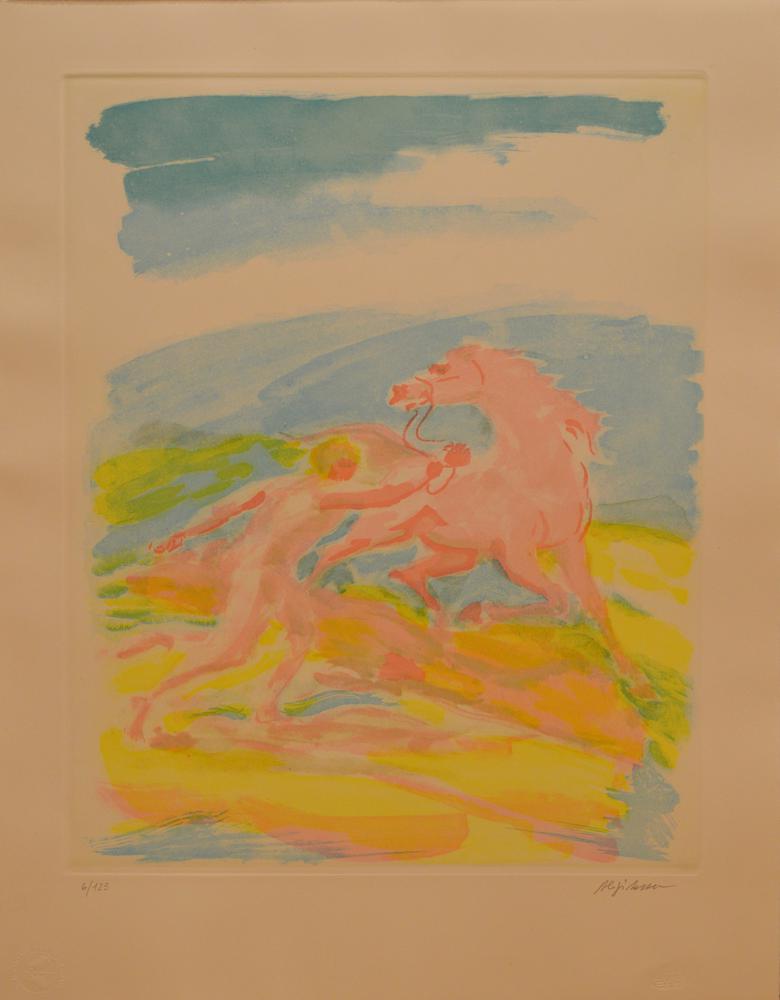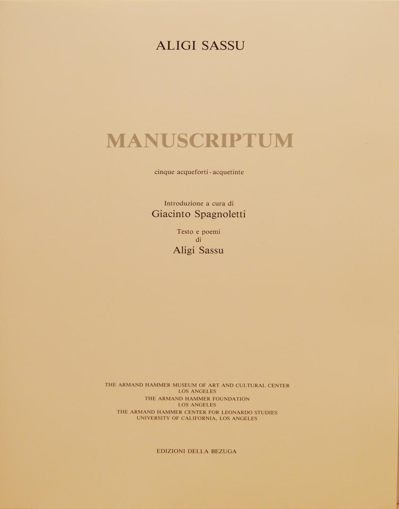 Aligi Sassu MANUSCRIPTUM cartella contenente cinque acquaforti-acquatinte,...