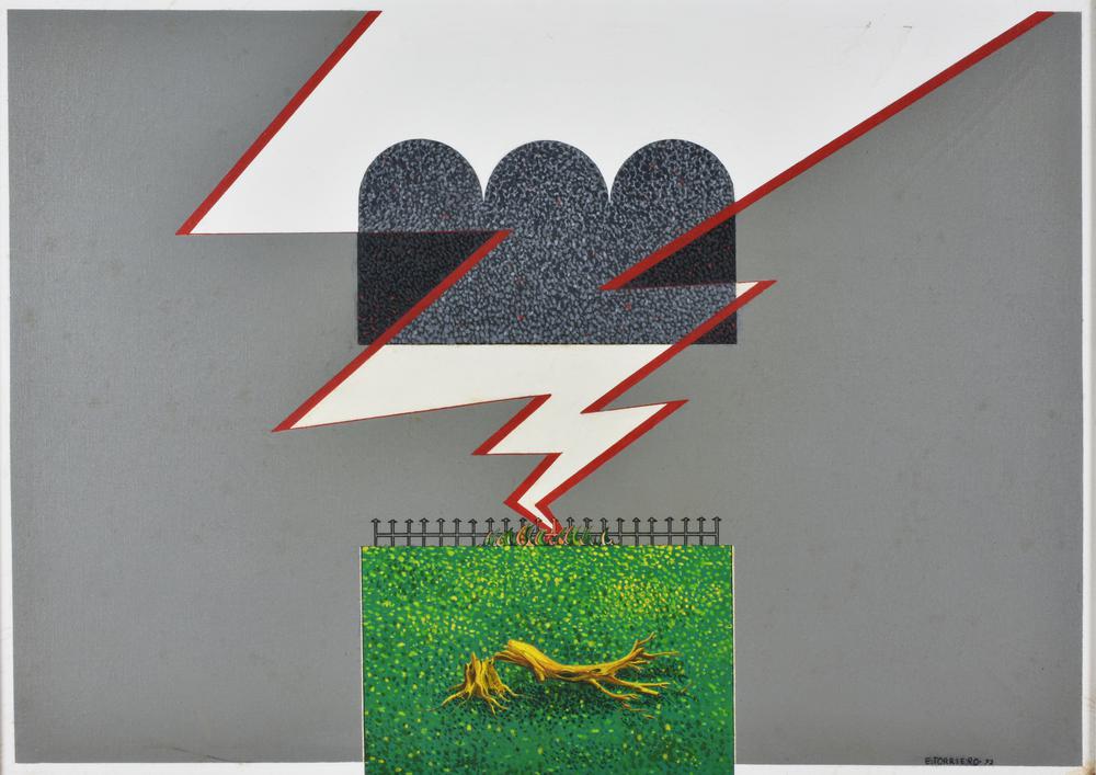 Elio Torriero IL FULMINE acrilico su tela, cm 50x70 firma e data sul retro:...