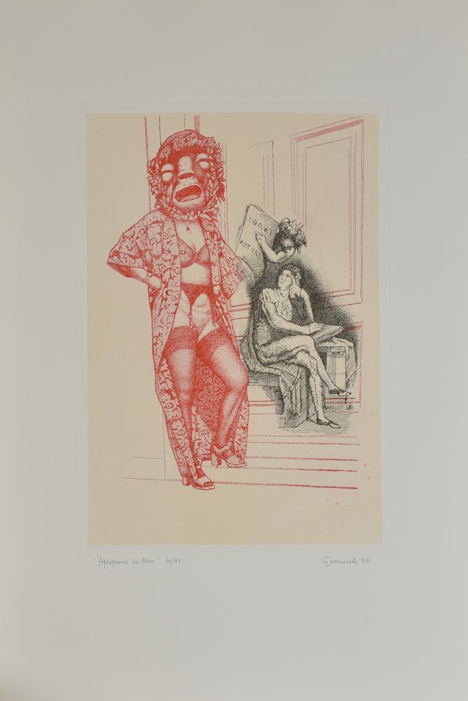 Giuseppe Guerreschi APHORISMA ON MAN incisione su carta, foglio cm 78,5x53,...
