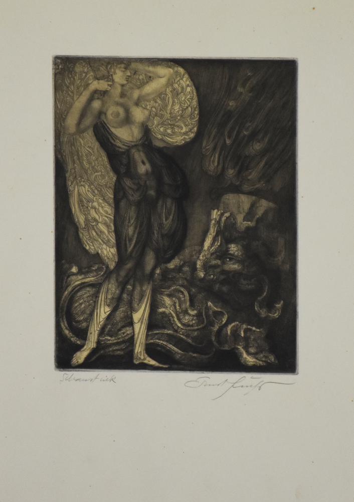 Ernst Fuchs GENIE UND TIER acquaforte su carta, cm 25x17,7 esemplare prova...