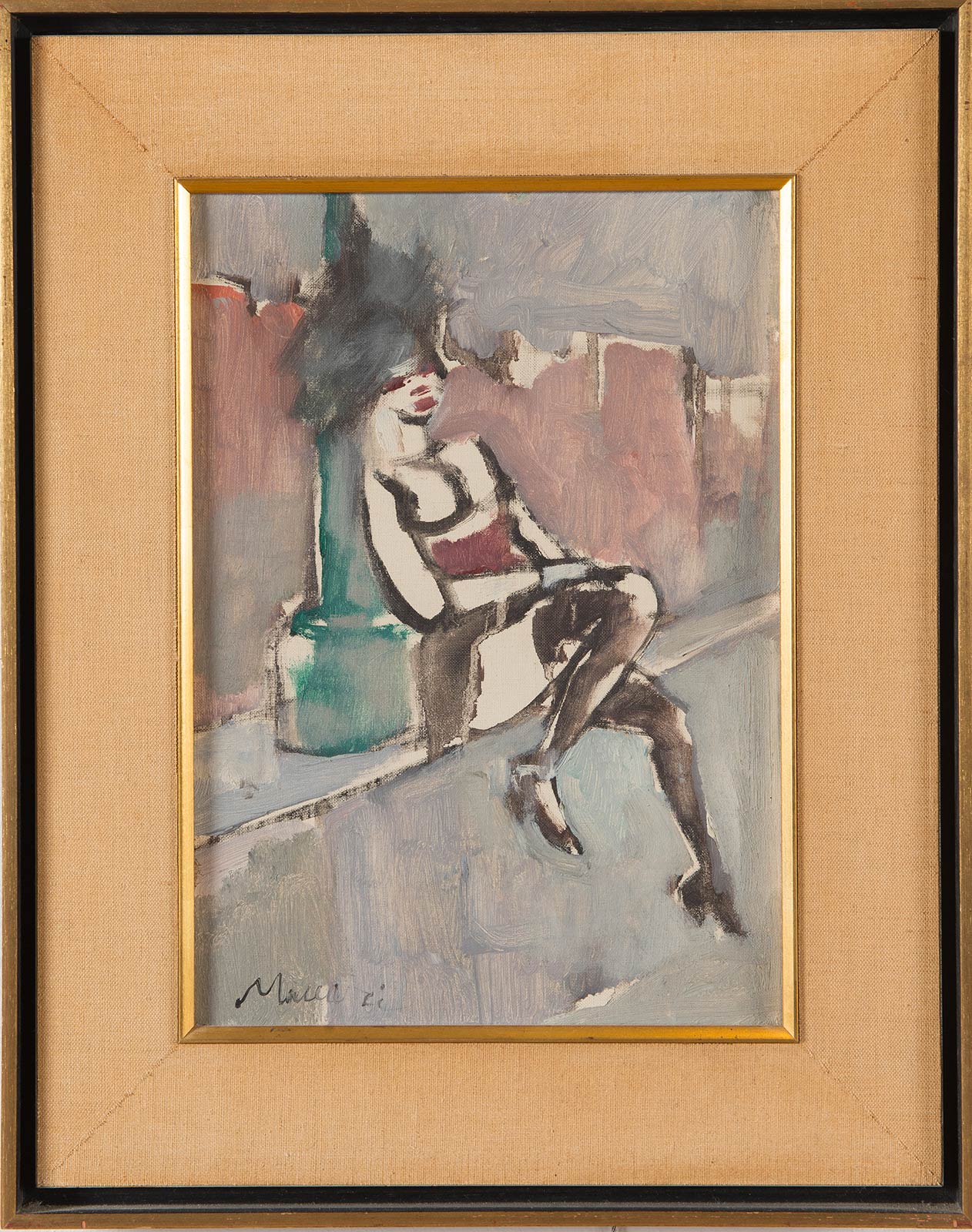 Olio su cartone telato, firmato in basso a sinistra Maccari, H cm 35x25Al retro reca etichetta Galleria La Loggia – Arte Contemporanea – Bologna. Al retro reca etichetta e timbri Dogana di Ventimiglia in data 4 Maggio 1998. Opera accompagnata da certificato di autenticità dell’Archivio delle Opere del Maestro Mino Maccari a firma Marco Maccari e data 29/12/98. Provenienza: Collezione Privata – Bologna.