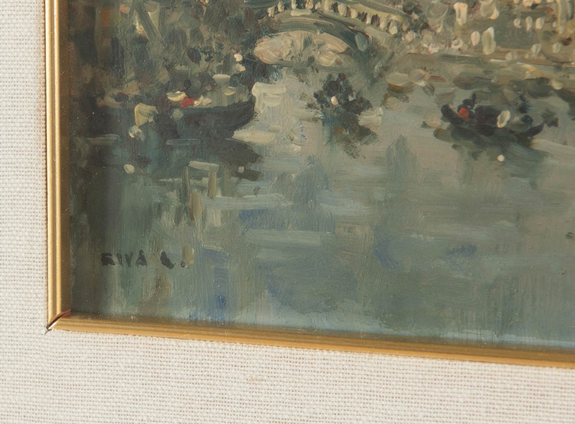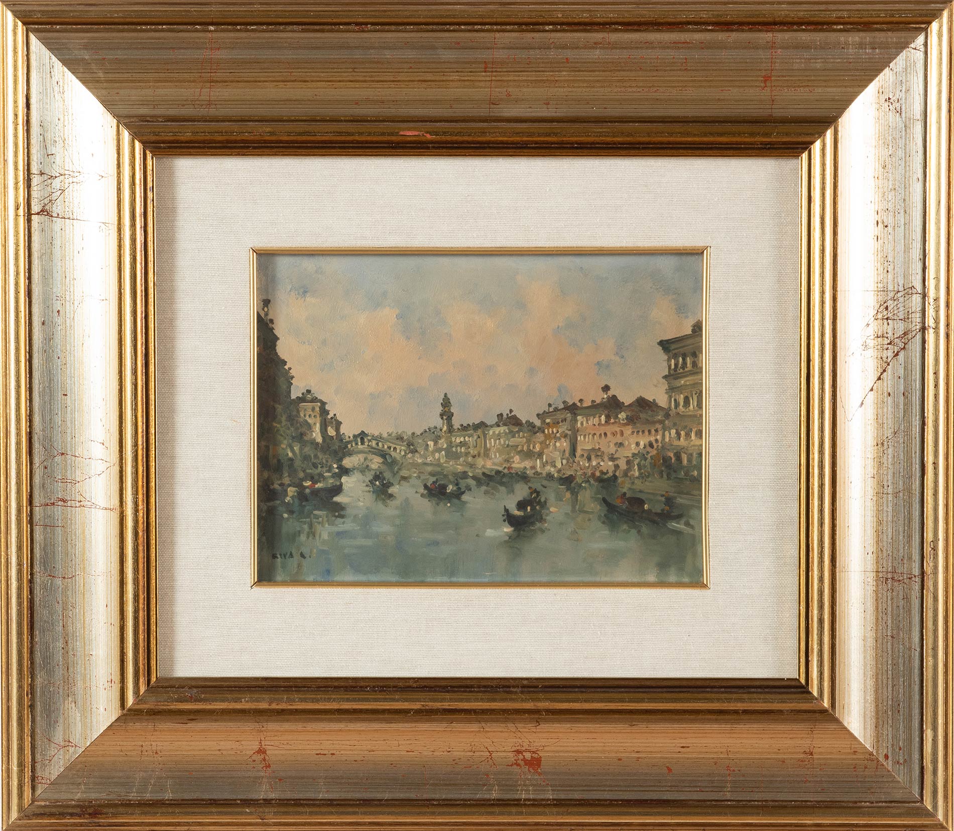 Olio su masonite, firmato in basso a sinistra Riva G., al retro titolo ‘Canal grande, Venezia’ e numero 593, H cm 18x24
