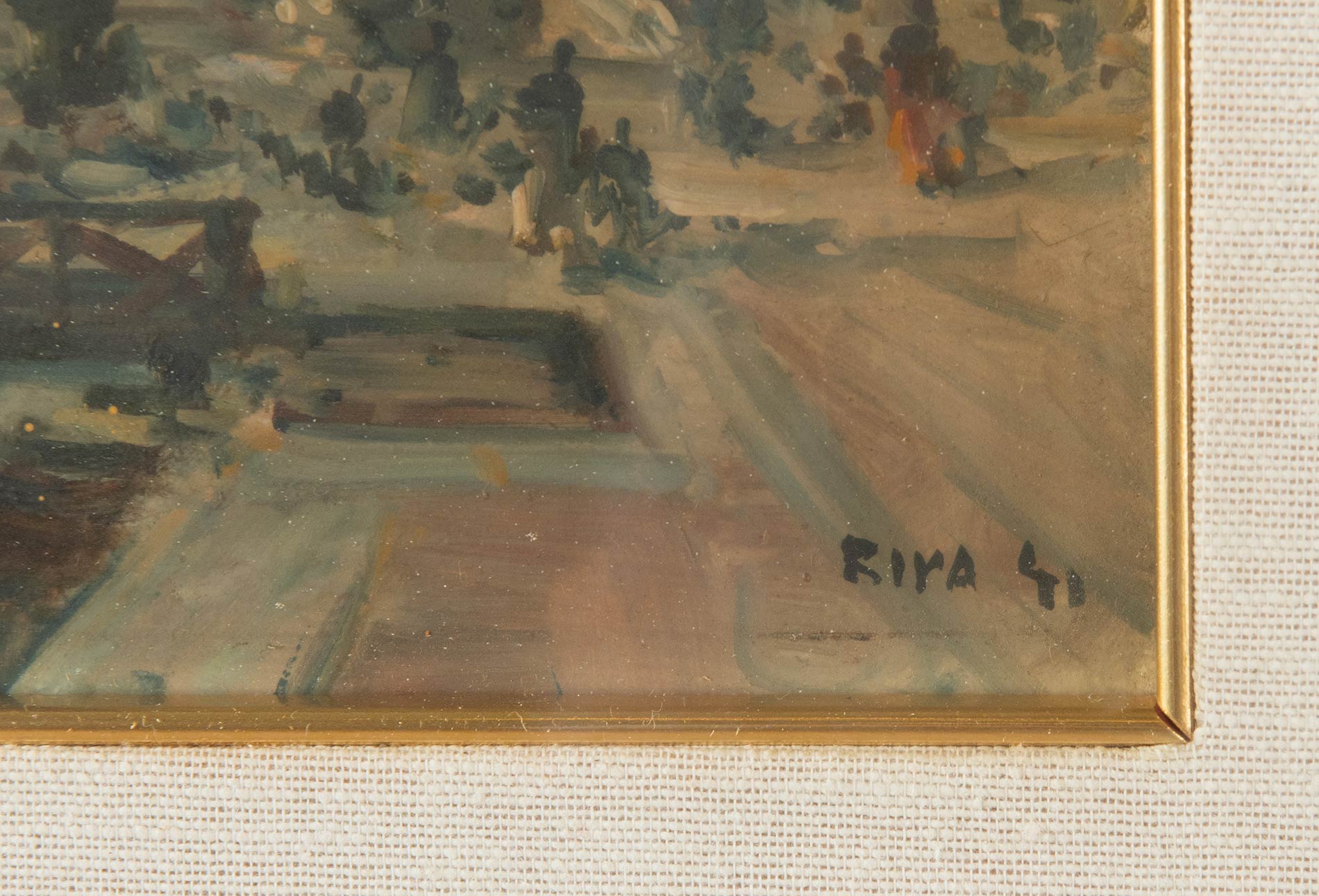 Olio su masonite, firmato in basso a destra Riva G., al retro titolo ‘Riva degli Schiavoni, Venezia’ e numero 588, H cm 18x24