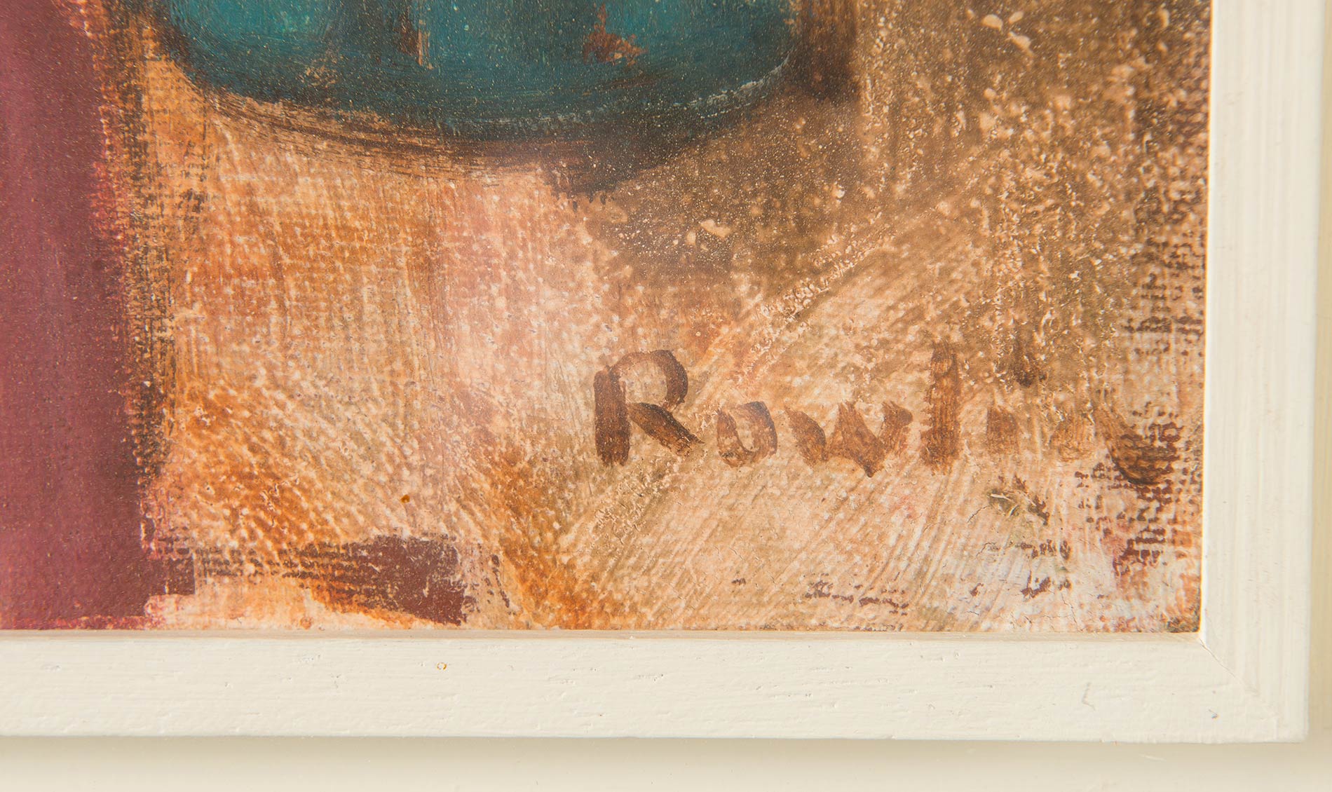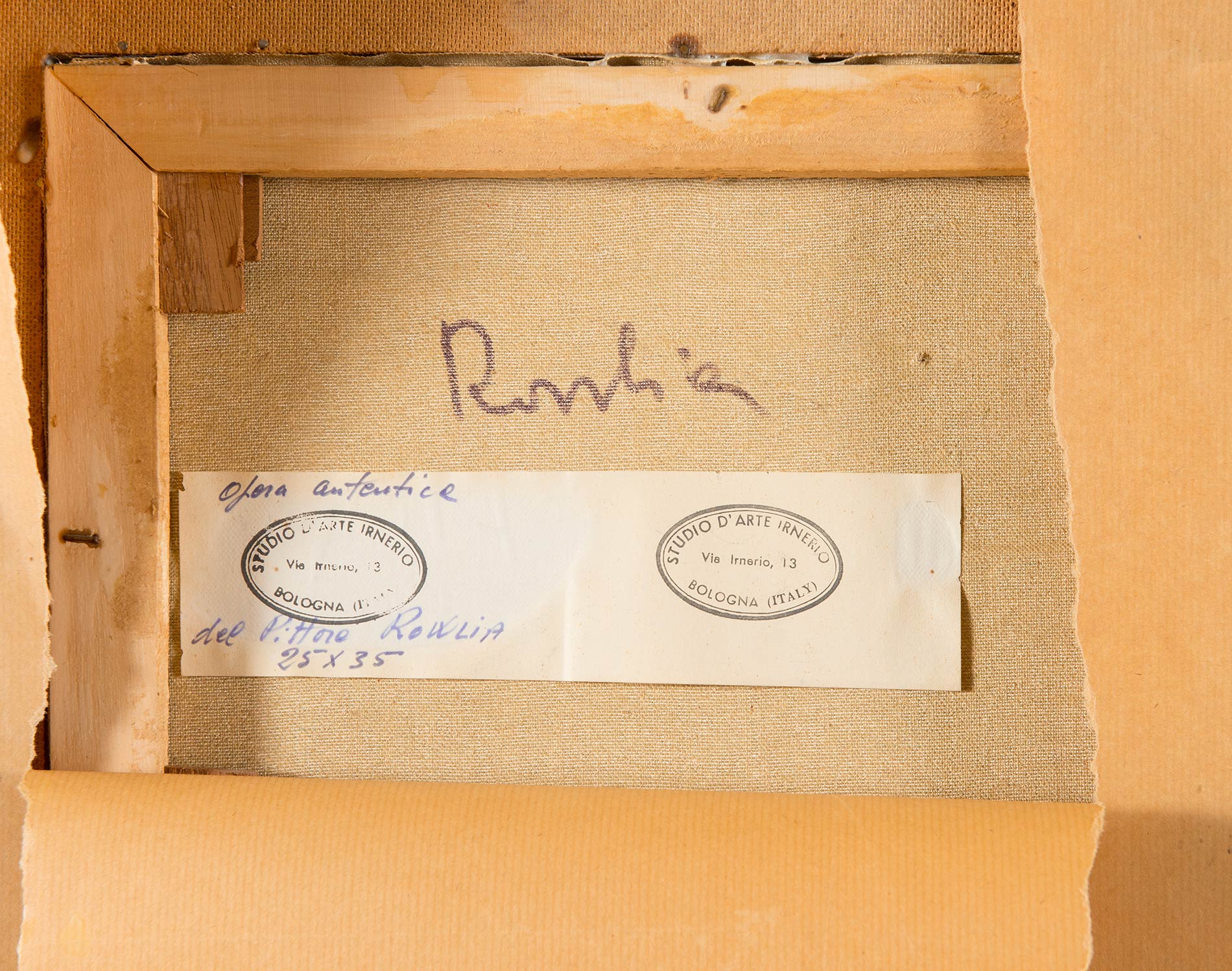 Olio su tela, firmato in basso a destra Rowlia, firmato al retro Rowlia, H cm 25x35 Al retro reca etichetta Studio d’Arte Irnerio.