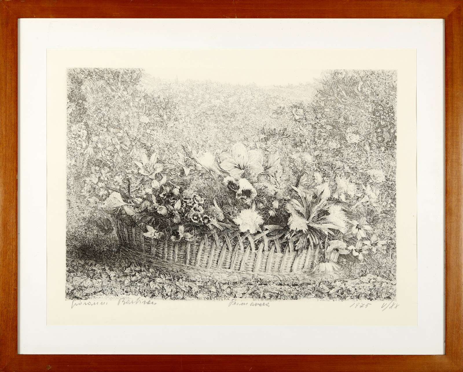 BARBISAN GIOVANNI (1914 - 1988) Primavera. 1975. Acquaforte. Cm 59,00 x 44,50. V/XX. Tiratura, firma, titolo e anno in basso a matita. Dimensione lastra: 34x56 cm. Lievi difetti. Cornice presente