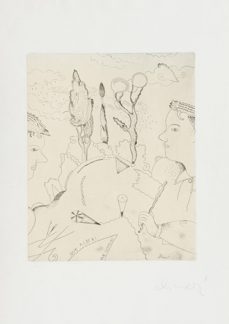 Luca Alinari Due alberi, due uomini Acquaforte di cm. 39,5x32, su carta di cm. 65x46,5, es. P.A. Firmato in basso a destra.