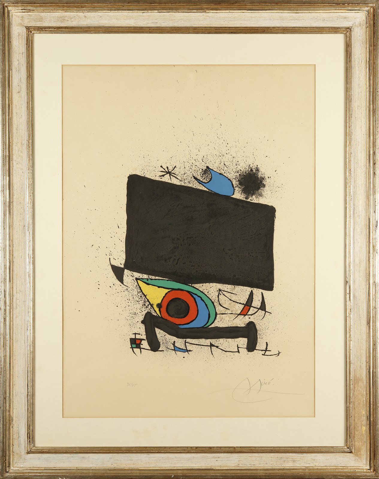 MIRO' JOAN (1893 - 1983) Terre Des Hommes. 1973. Litografia. Cm 50,00 x 70,00. 36/75. Tiratura e firma a matita in basso. Bibliografia: Cramer, V, n.921. Editore: Terre Des Homes, Lusanne; Stampatore: Arte Adrien Maeght, Paris. Cornice presente