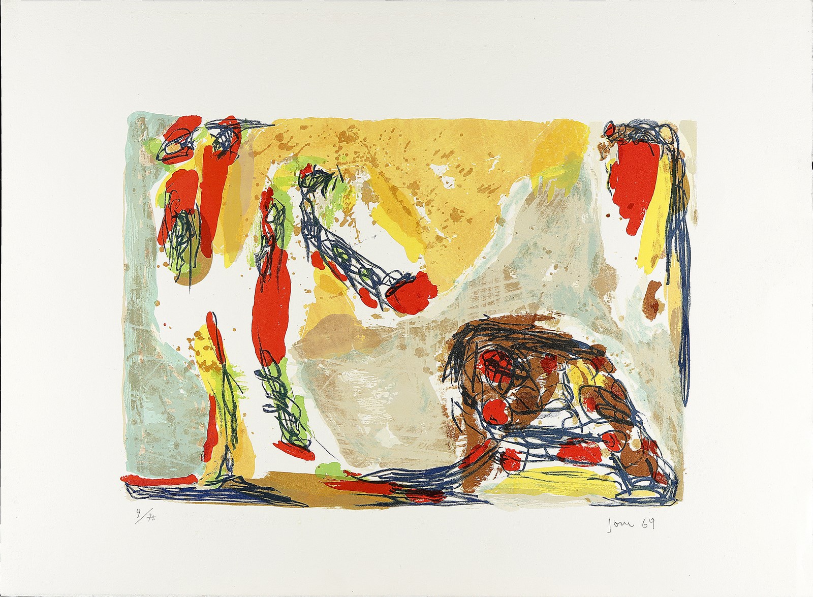 JORN ASGER (1914 - 1973) Trop tot. 1969. Litografia. Cm 76,00 x 55,00. 9/75. Tiratura, firma e anno a matita in basso. Bibliografia: Van de Loo no. 247