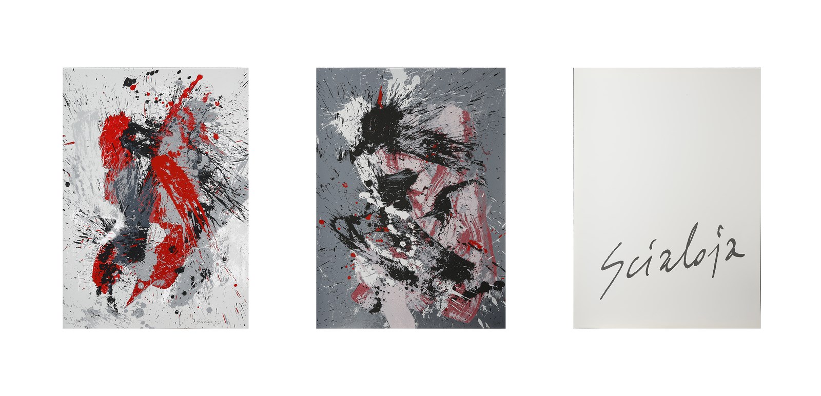 SCIALOJA TOTI (1914 - 1998) Cartella composta da n.2 fogli. Senza titolo. 1997. Serigrafia (cartella completa). Cm 50,00 x 70,00. XXIV/XXX. 20/99. Ogni foglio presenta tiratura, firma e anno a matita in basso. Confezione originale.