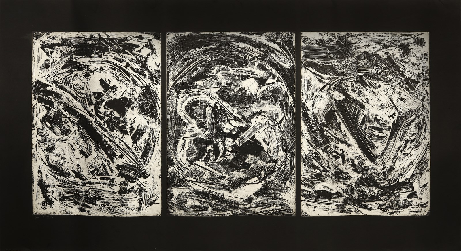 VEDOVA EMILIO (1919 - 2006) Oltre (trittico). Acquaforte e acquatinta. Cm 180,00 x 98,00. 41/99. Tiratura, firma e anno a matita in basso. 1987-1992. Stampatori: Corrado Albicocco e Federico Santini. Carta Arches. Editore: Il Cigno Galileo Galilei Edizioni d'arte e Scienza di Roma. Edizione totale: 99 esemplari numerati da 1 a 99, XV esemplari numerati da I a XV + 8 p.d.a. Autentica dell'artista. Difetti.