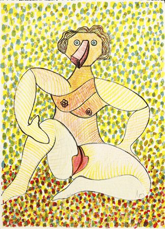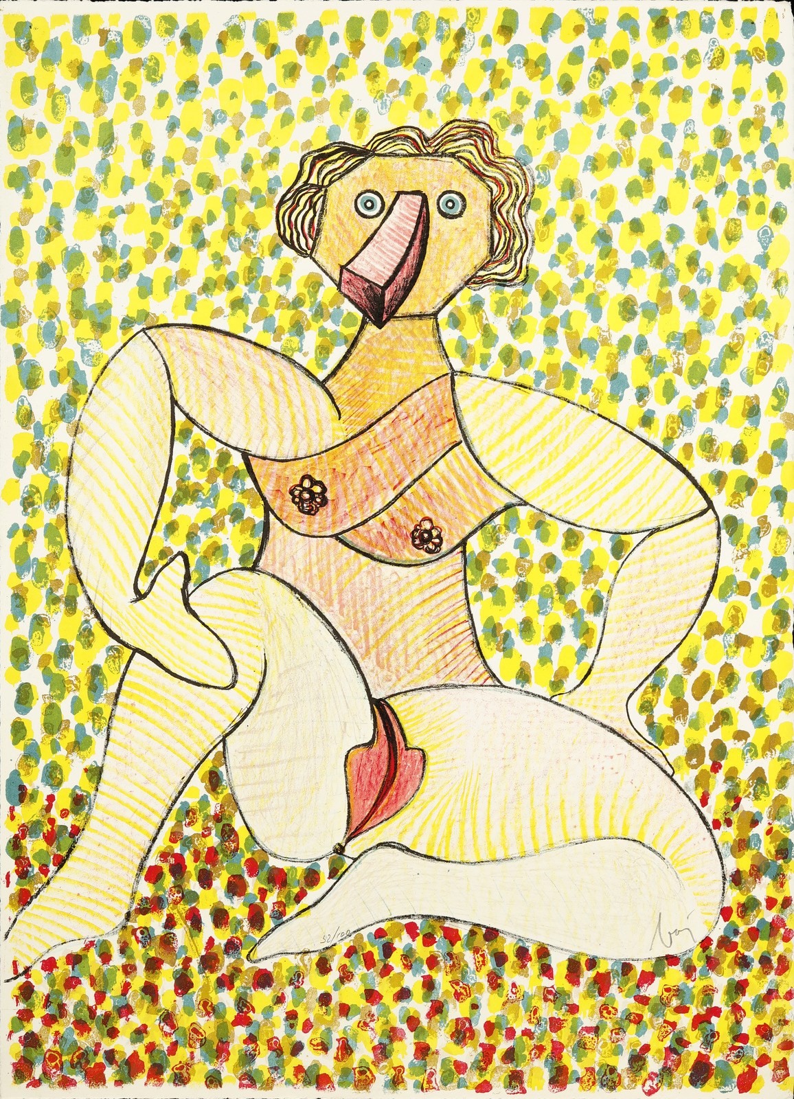 BAJ ENRICO (1924 - 2003) Catherine Marie De Lorraine. Duchessa di Montpensier. 1972. Litografia. Cm 50,00 x 70,00. 32/100. Tiratura e firma in basso a matita. Bibliografia: Petit 354.