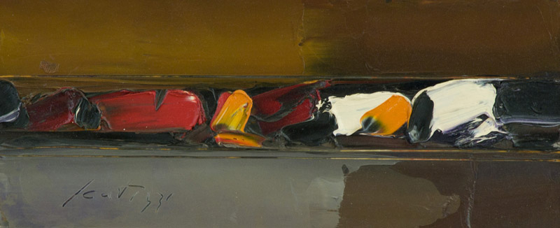 Sergio Scatizzi Natura morta Olio su tavola, cm. 15,5x36 Firmato in basso a sinistra. Autentica dell'Artista su foto.