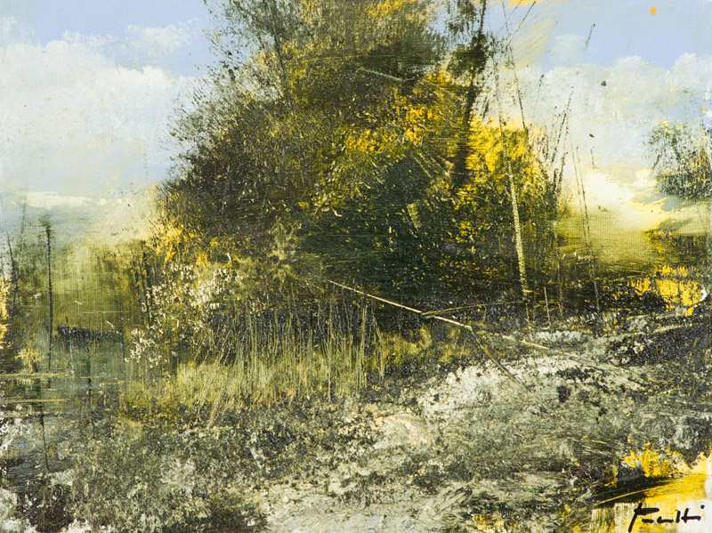 Antonio Pedretti Paesaggio Olio e sabbia su tela, cm. 30x40 Firmato in basso a destra. Sul verso: firma.