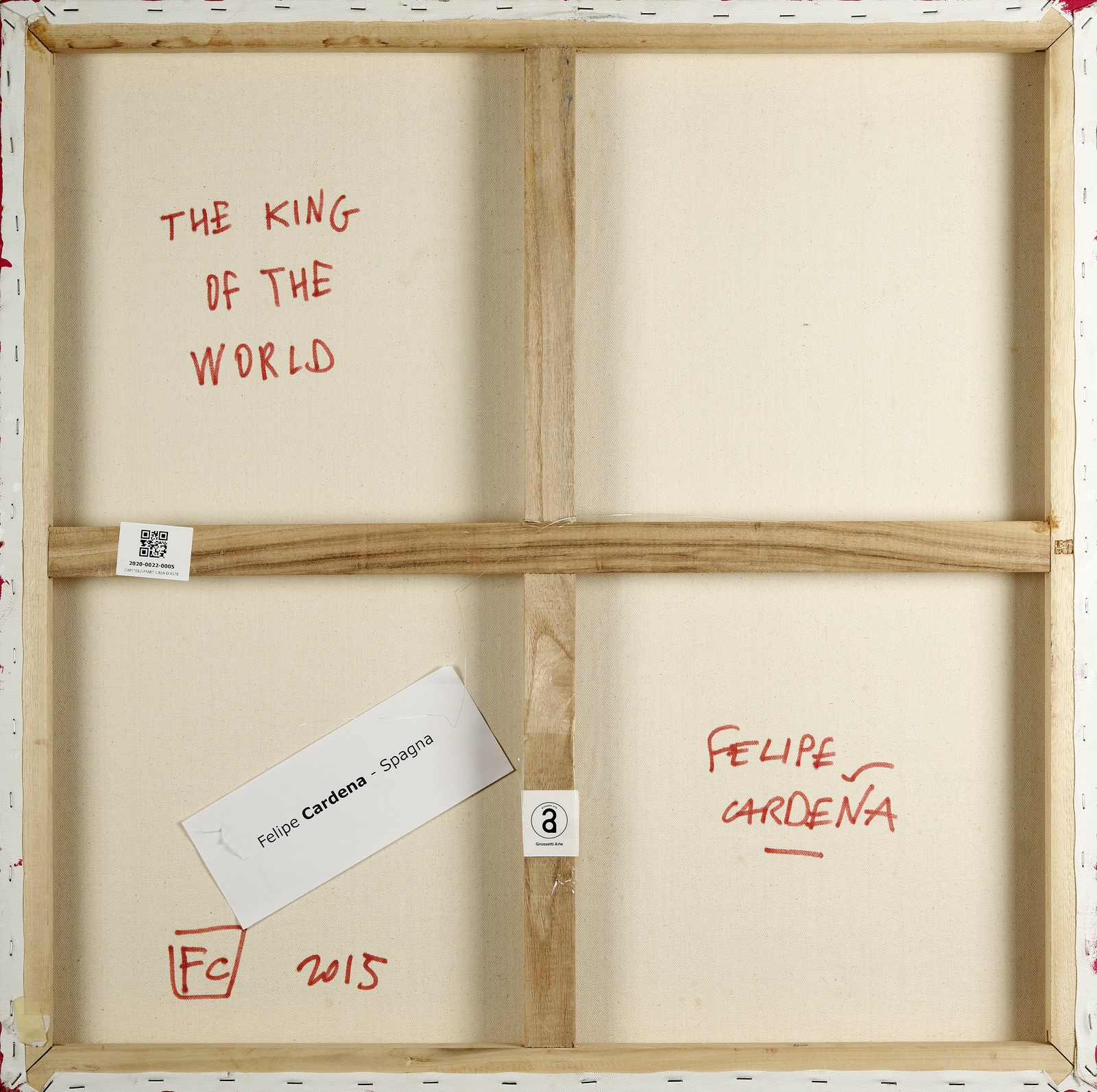 CARDENA FELIPE (n. 1979) The king of the worlds. 2015. Tecnica mista su tela. Cm 80,00 x 80,00. Al retro titolo, firma e anno.