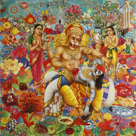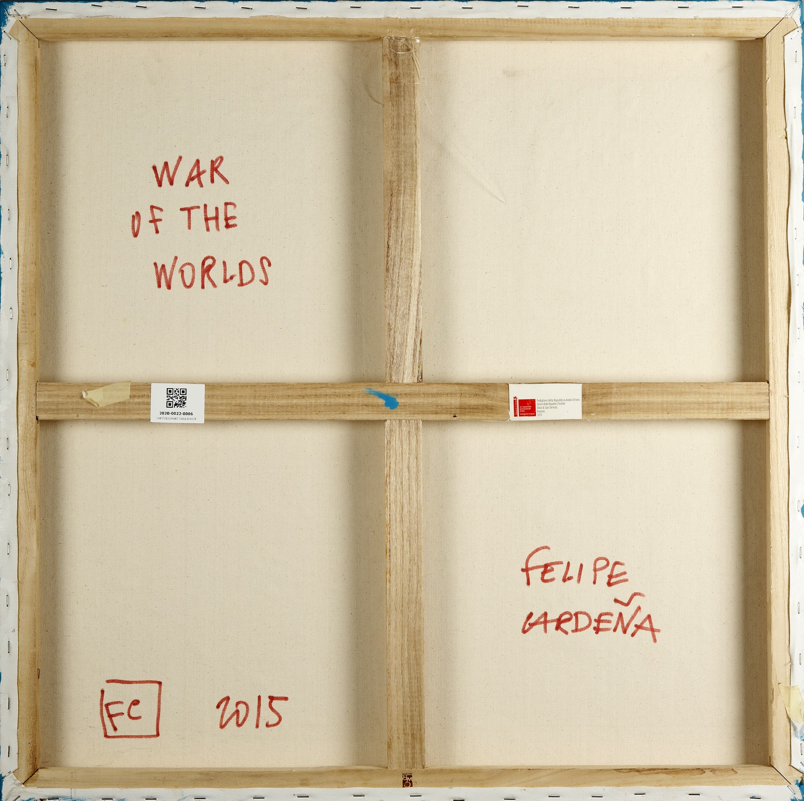 CARDENA FELIPE (n. 1979) War of the worlds. 2015. Tecnica mista su tela. Cm 80,00 x 80,00. Al retro titolo, firma e anno.