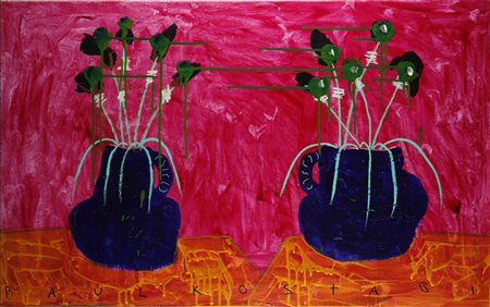 KOSTABI PAUL INDREK (n. 1962) Connections. 2004. Olio su tela . Cm 116,00 x 71,00. Firma in basso al centro. Al retro titolo, firma e anno. Certificato di autenticità Follin Gallery, New York.