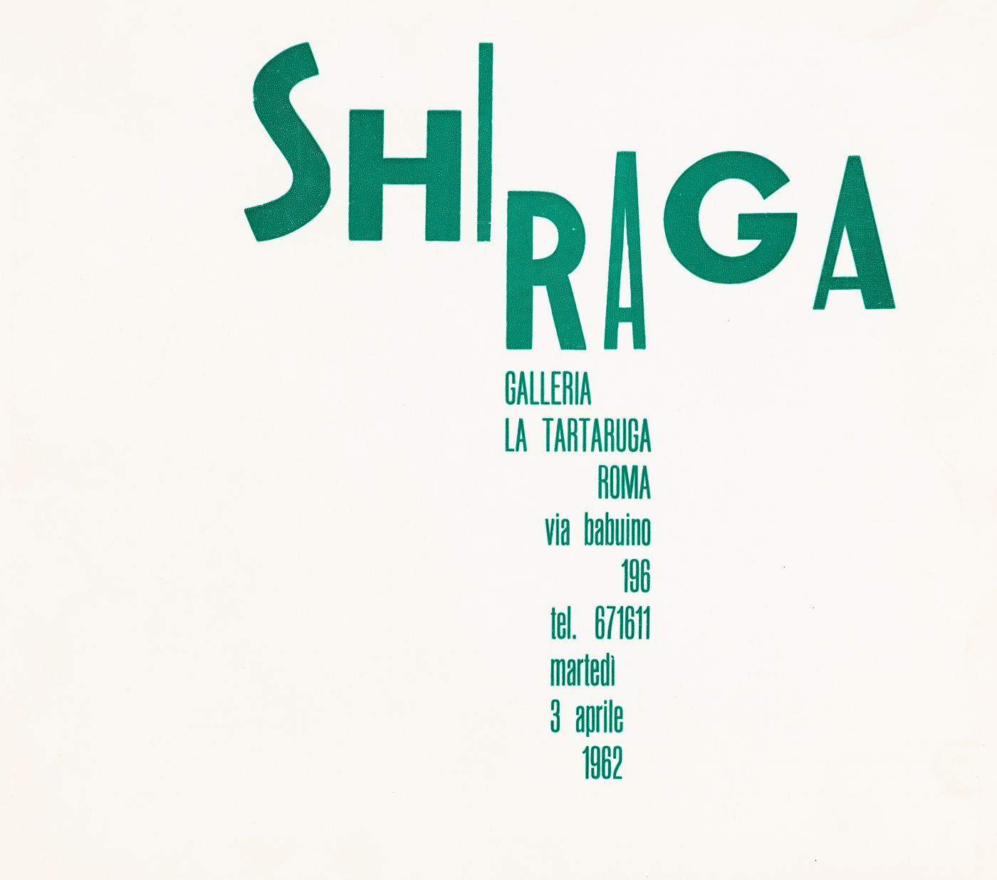 Locandina dell'esposizione 'Shiraga' tenutasi presso Galleria La Tartaruga, Roma, Aprile 1962