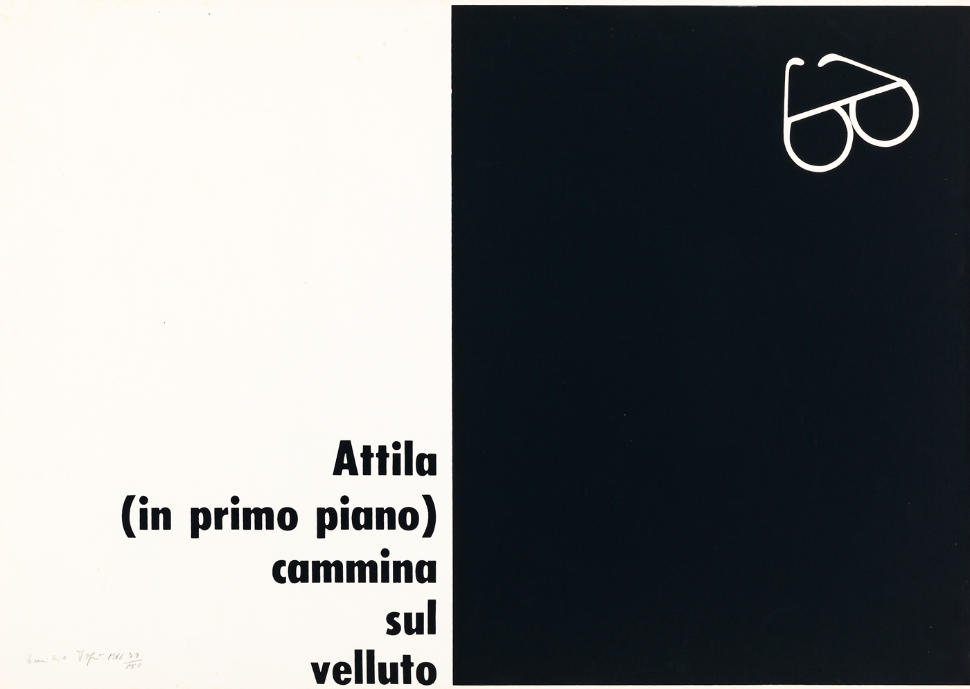 Opera originariamente contenuta all'interno della cartella 'Poesie visive e cancellature', 1970, Peruz Editore, Milano