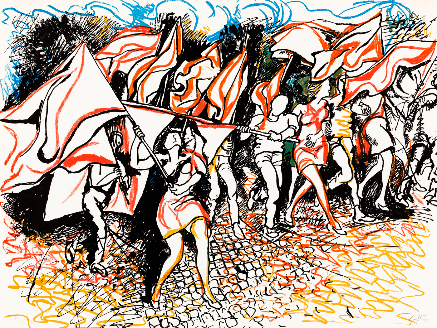 Lotto 307 | RENATO GUTTUSO (1911-1987) - La gioventù con bandiere, 1968