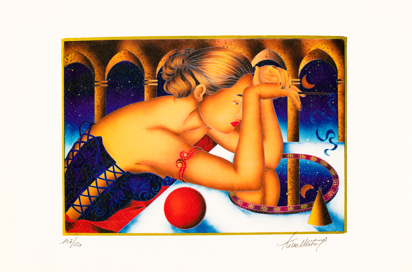 Firma e numerazione (Esemplare 107/150) a matita al fronte