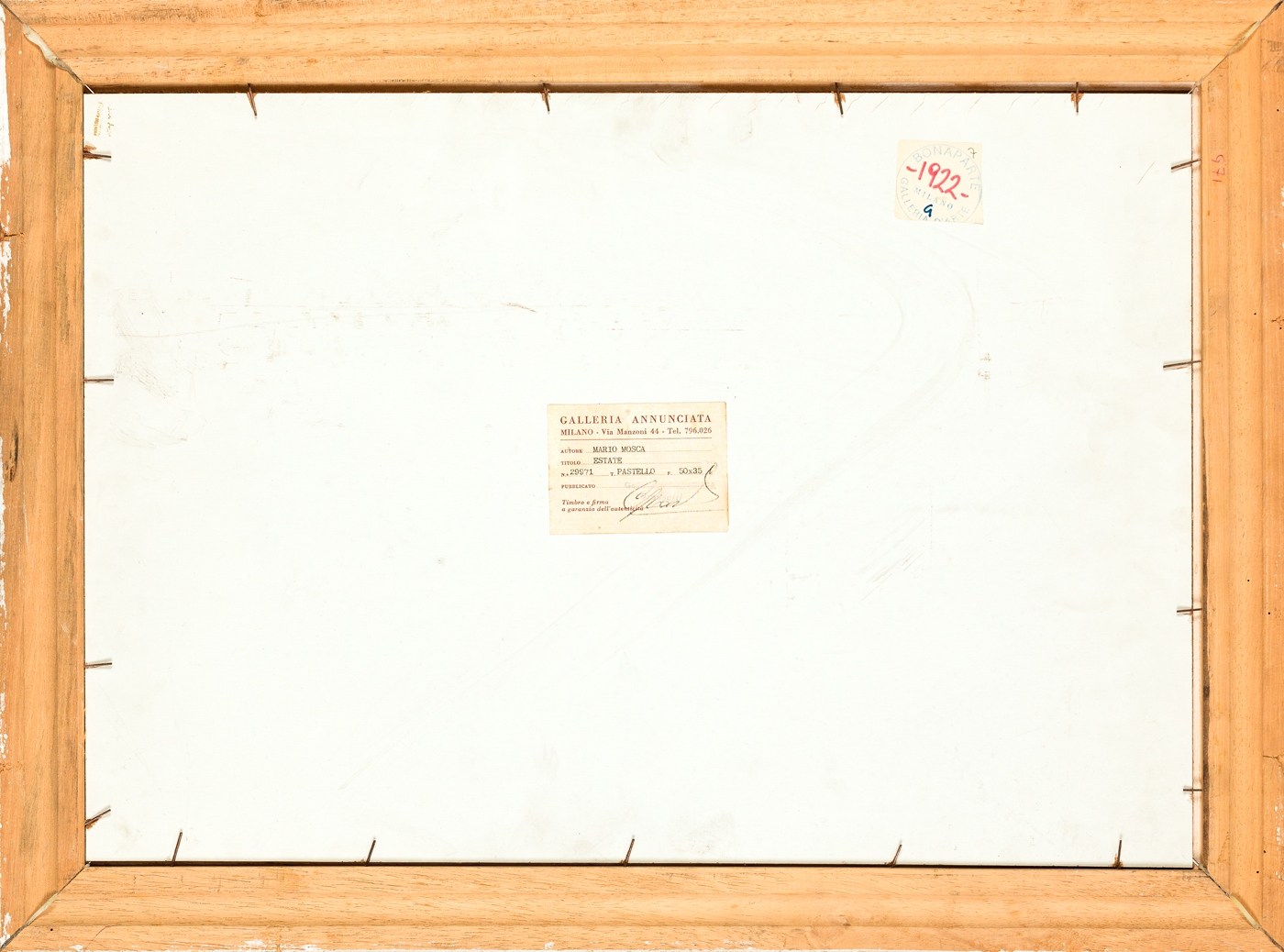 Etichetta della Galleria Annunciata (MI) e della Galleria d'Arte Bonaparte (MI) al retro