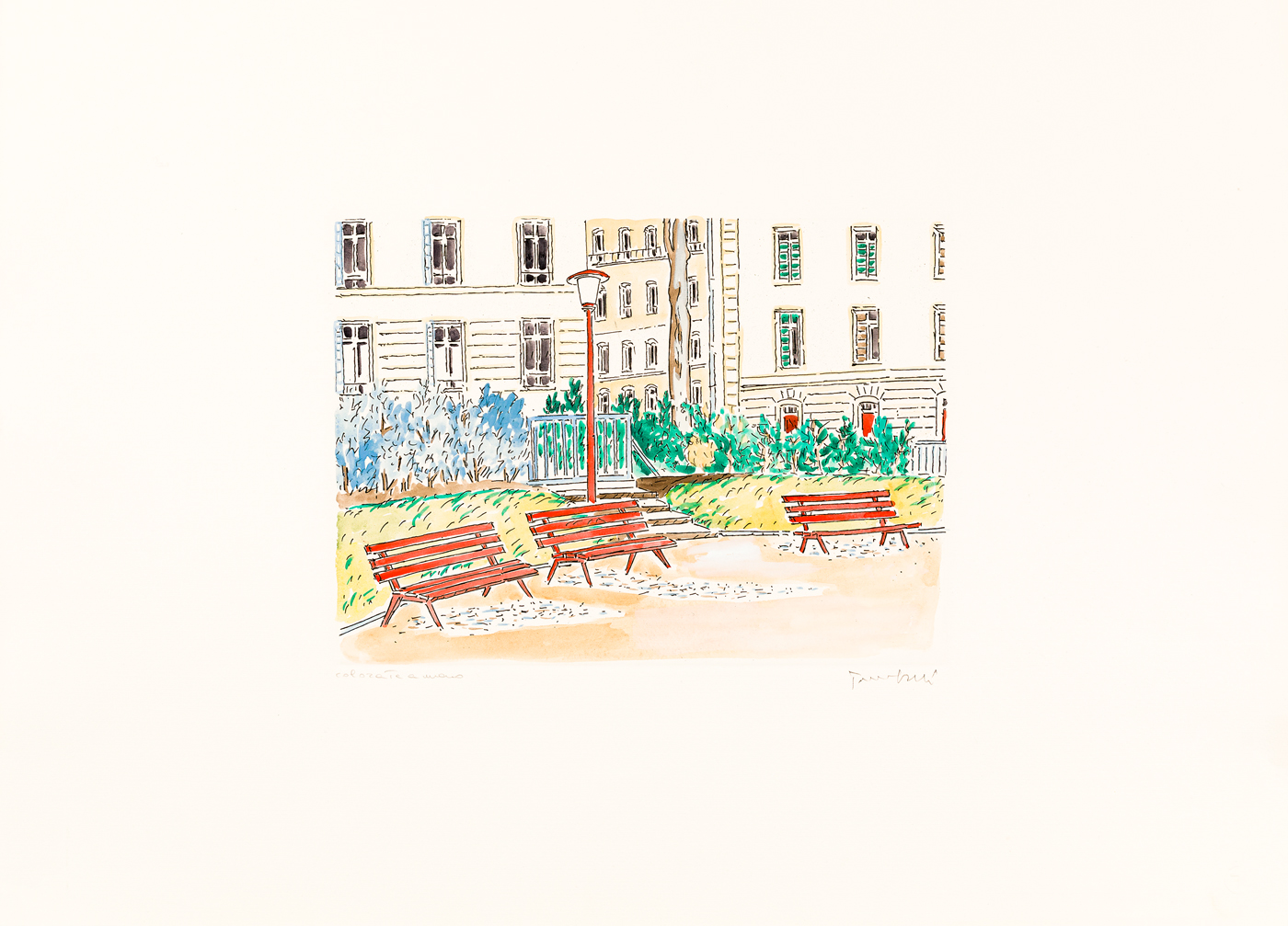 Firma e numerazione (Esemplari Colorato a mano) a matita al fronte