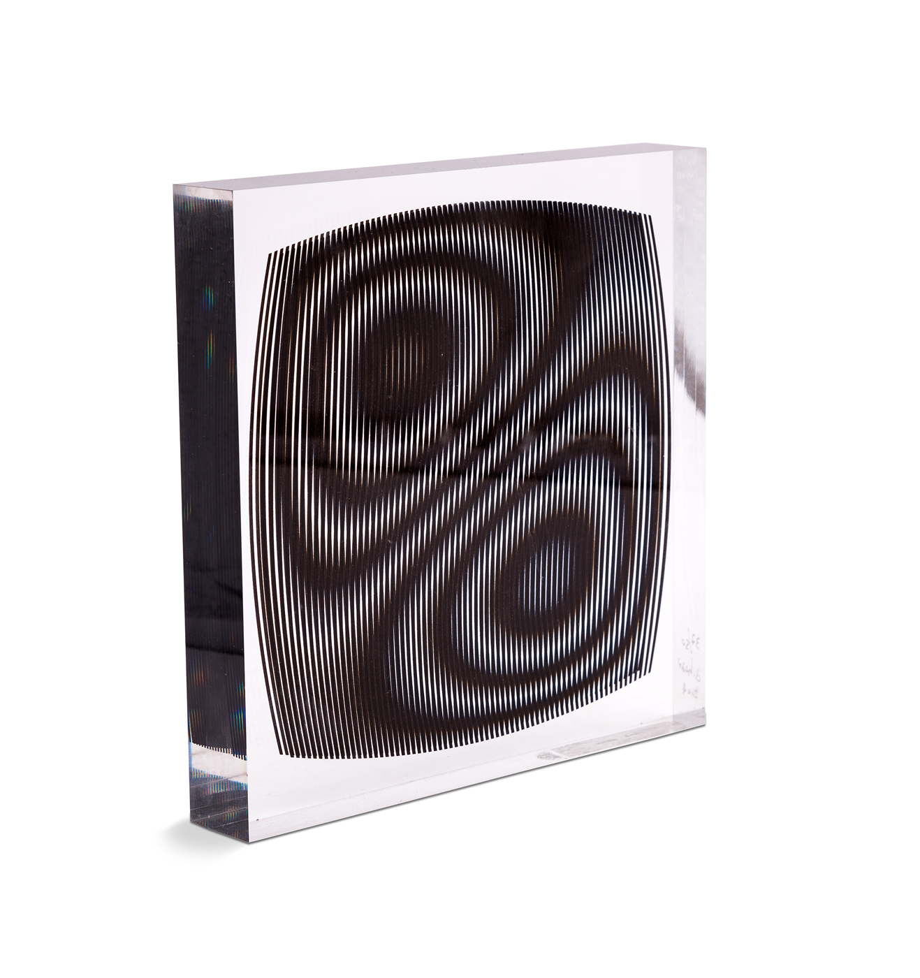 Multiplo costituito da un doppia serigrafia inglobata in metacrilato