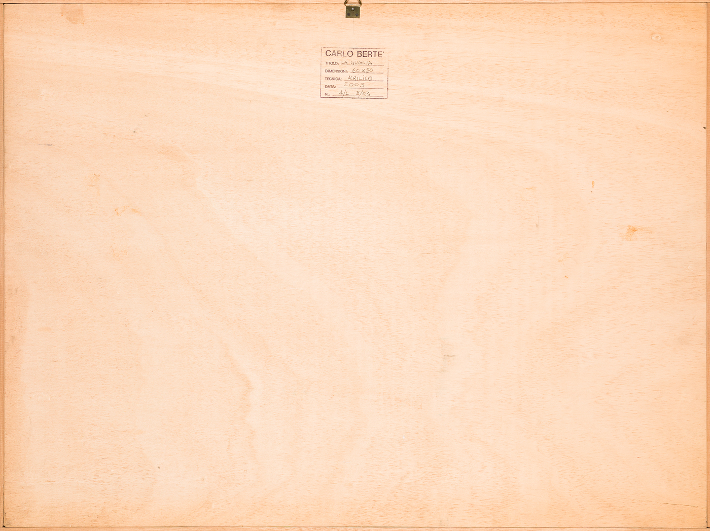 Timbro dell'Artista con caratteristiche tecniche dell'opera e numero di registrazione al retro