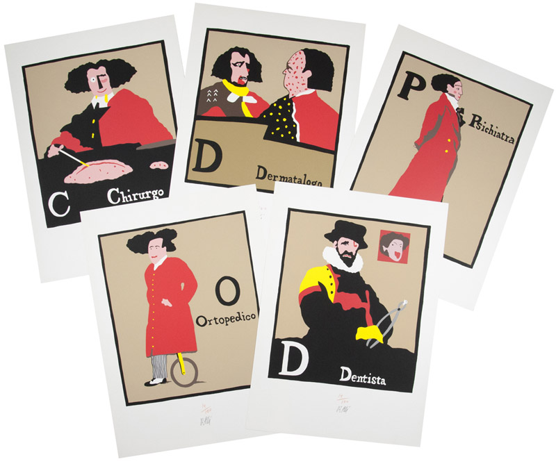 Fabio De Poli Ippocrate, 1993 Cartella contenente cinque litografie su carta, cm. 70x50, "Stefanini and Stefanini editore" Tutti gli esemplari sono numerati 14/100 e firmati dall'Artista.