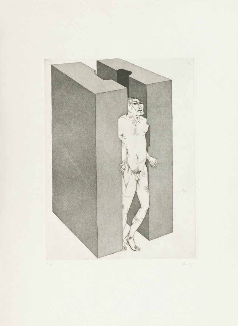 Giuliano Vangi Senza titolo Acquaforte di cm. 41x31, su carta di cm. 70x50,5, es. P.A. La carta presenta lievi imperfezioni ai bordi. Firmato in basso a destra.