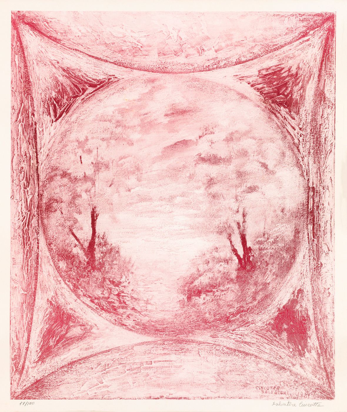 Firma e numerazione (Esemplare 17/100) a matita al fronte