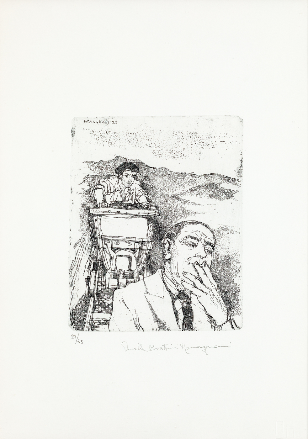 Firma di Ornella Boattini Romagnoni e numerazione (Esemplare 27/55) a matita al fronte