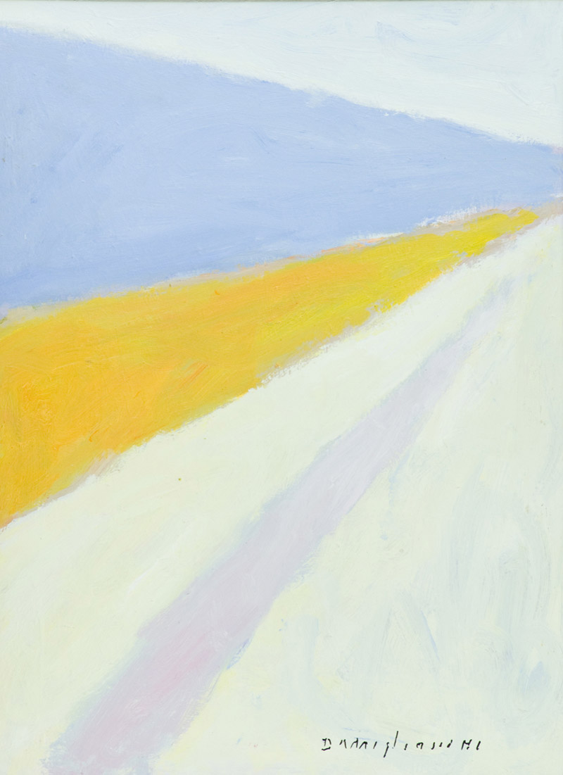 Dino Migliorini La strada dei setteponti Olio su faesite, cm. 77x57 Firmato in basso a destra. Sul verso: scritto di Autenticità dell'Artista e titolo.