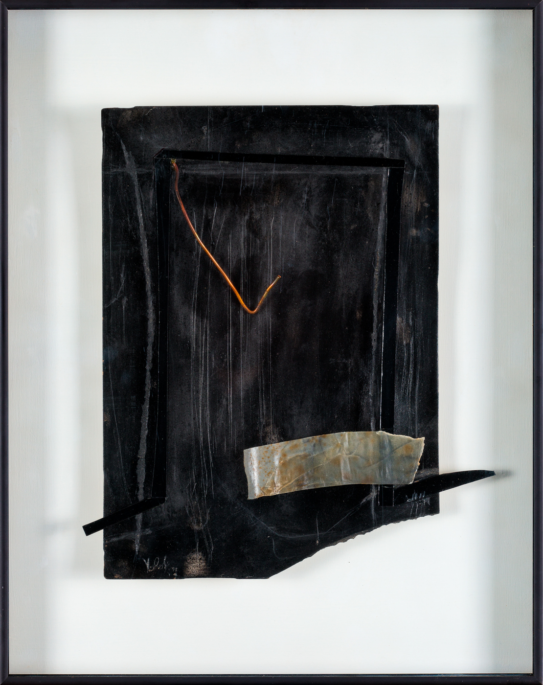 Firma, titolo, tecnica e datazione al retro della tavola protettiva