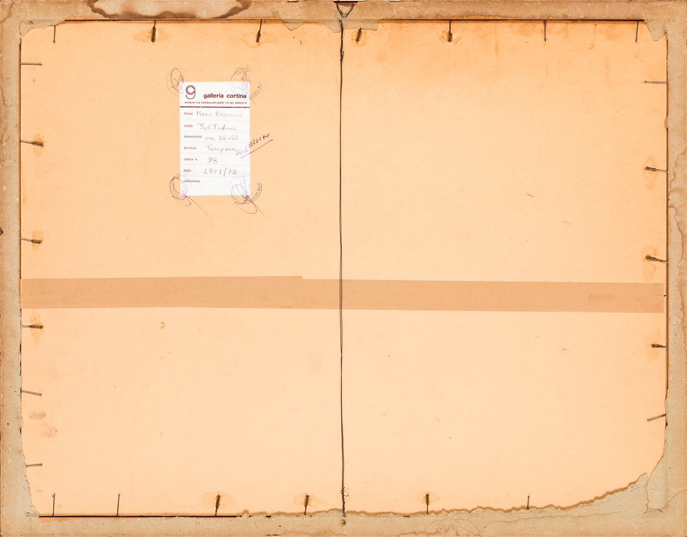 Etichetta e timbri della Galleria Cortina (MI) al retro del cartone protettivo