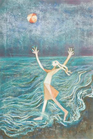 Enrico Benaglia Paesaggio con figura Tecnica mista su carta, cm. 48x33...