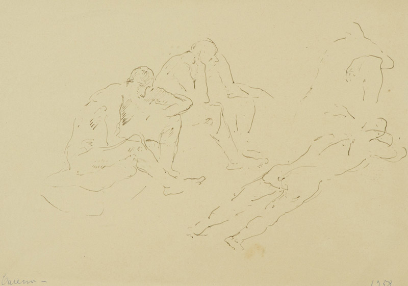 Felice Carena Figure, 1958 China su carta, cm. 24x33 Firma in basso a sinistra, data in basso a destra.