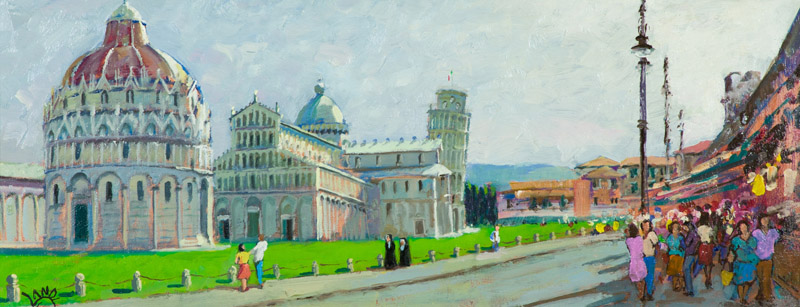 Giancarlo Landi Mattinata Pisana Olio su tavola, cm. 20x50 Firmato in basso a sinistra. Sul verso: firma e titolo.