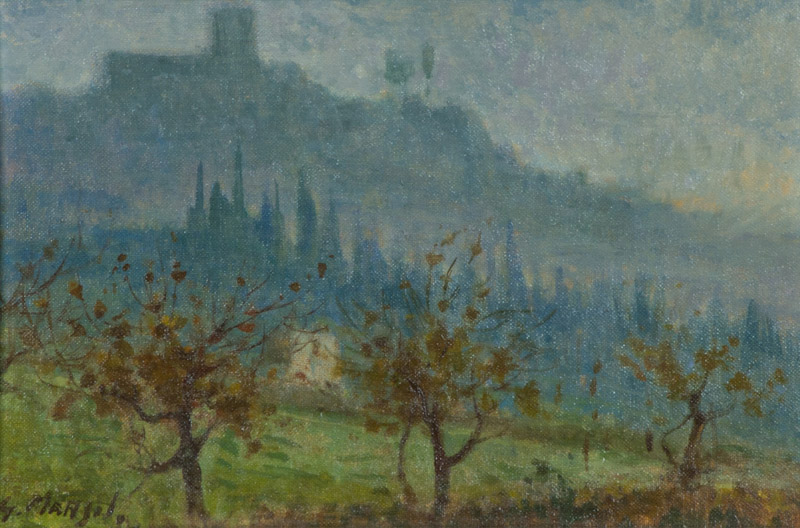 Graziano Marsili Paesaggio nella nebbia Olio su cartone telato, cm. 20x30...