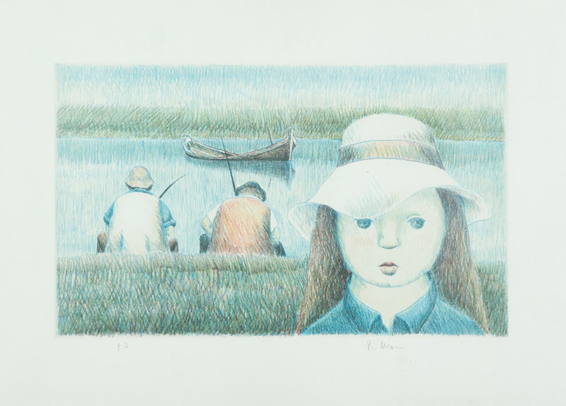 Roberto Masi Pescatori Litografia su carta, cm. 50x70, es. P.A. Firmato in basso a destra.