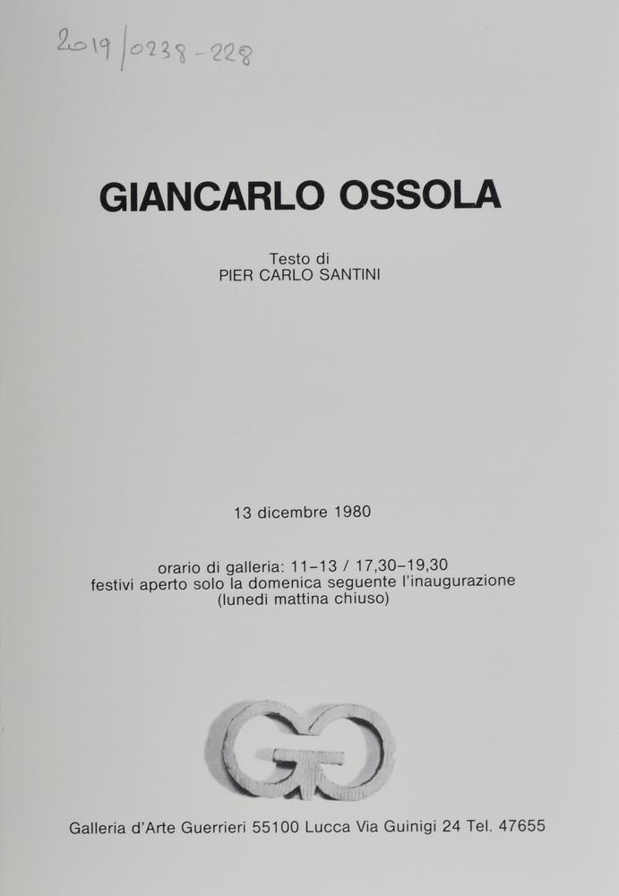 Libro edito dalla Galleria d'Arte Guerrieri di Lucca in occasione della personale di Giancarlo Ossola, dicembre 1980/gennaio 1981