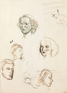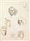 Domenico Gnoli Roma 1933 - New York 1970 Studio di volti China su carta, cm. 32,4x23,4 Firma in basso al centro: D. Gnoli. Esposizioni: Il segno eccentrico di Gnoli, a cura di Mauro Pratesi, Montecatini, Arte del XX secolo, 5 - 27 giugno 2004, cat. p. 10, illustrato.