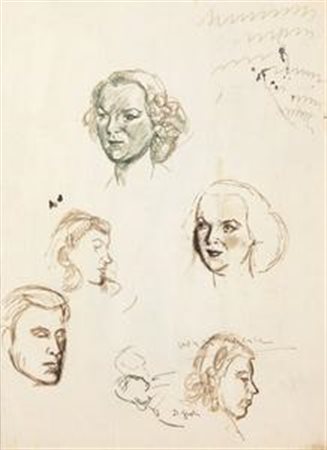 Domenico Gnoli Roma 1933 - New York 1970 Studio di volti China su carta, cm....
