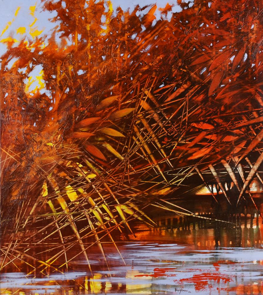 Marco Borgianni TRAMONTO acrilico su tela, cm 80x70 firma e data sul retro:...