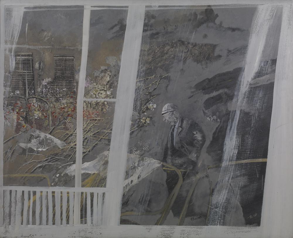 Giuseppe Banchieri FIGURE NEL CORTILE olio su tela, cm 80x100 firma e data...
