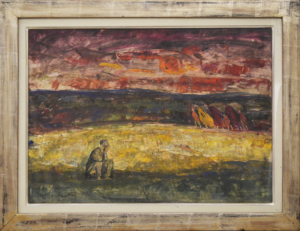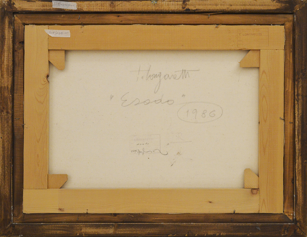 Trento Longaretti ESODO tempera e gouache su cartone applicato su tela, cm...