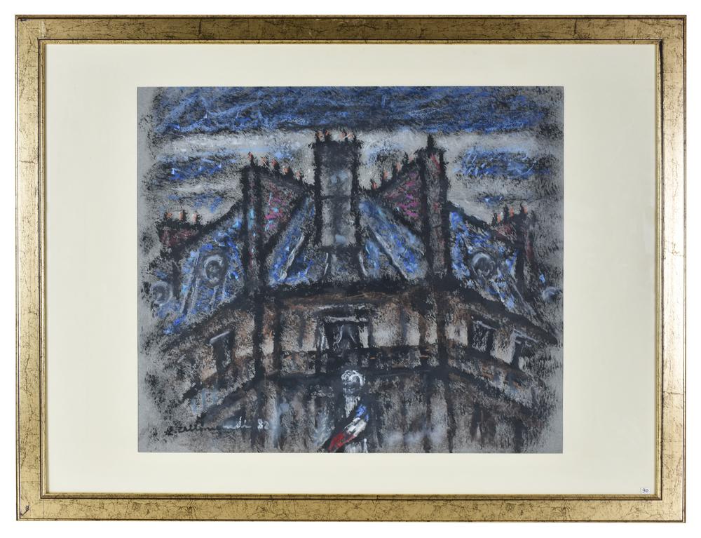 Enrico Allimandi ARCHITETTURA A PARIGI tecnica mista su carta, cm 50x60 sul...
