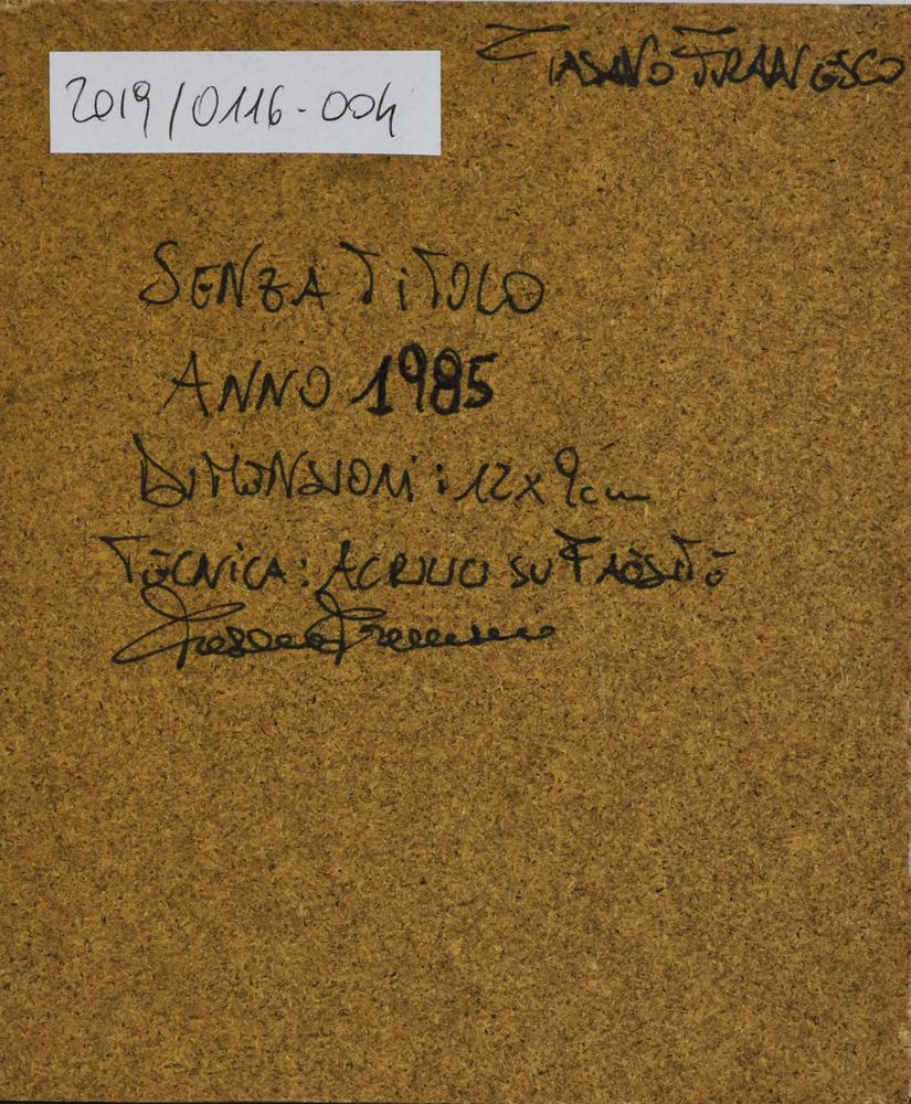 Lotto 75 | Francesco Fasano SENZA TITOLO acrilici su faesite, cm 15x12,5 sul retro:...