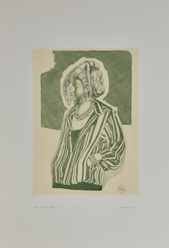 Lotto 115 | Giuseppe Guerreschi MISS SIDNEY incisione su carta, foglio cm 78,5x53,...
