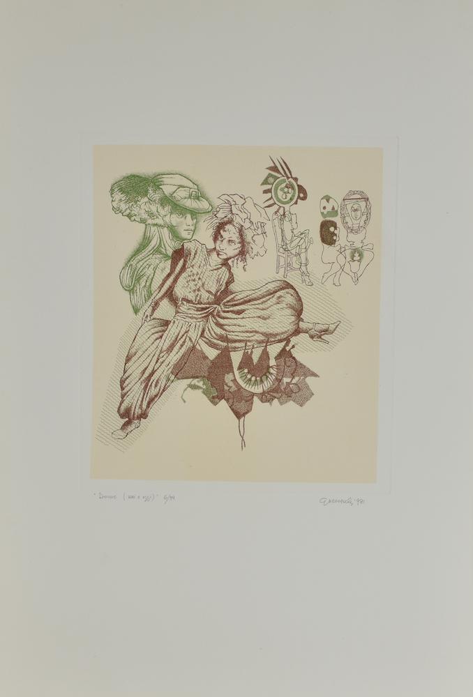Giuseppe Guerreschi DONNE (IERI E OGGI) incisione su carta, foglio cm...